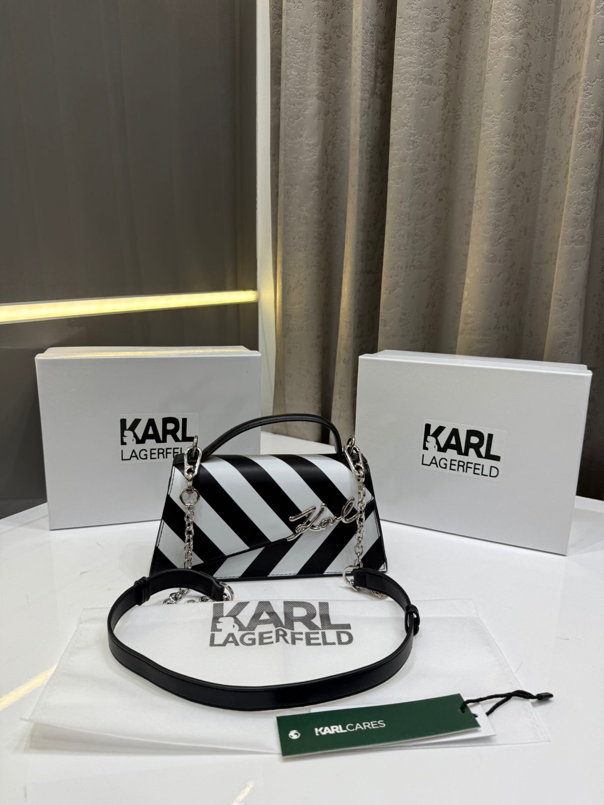 *PRODUCT NAME:-KARL BLACK/WHITE PREMIUM LEATHER BAG WITH OG BOX*ššÆ